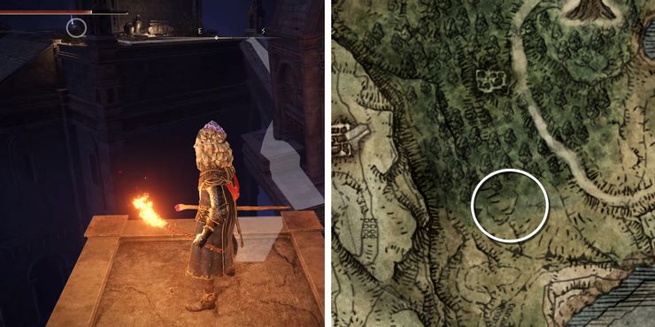 A continuación, vuelve a subir a la esquina superior izquierda de la plataforma cuadrada y salta a toda velocidad por el hueco hasta el campanario apartado. Salta con cautela sobre el hastial derrumbado y realiza otro salto veloz para llegar al balcón opuesto. El cadáver de un noble que domina la ruta hacia Norkon se puede saquear para adquirir la Antorcha de llama fantasmal en Anillo de Elden. Para bajar, Tarnished puede saltar al techo de abajo y caer una vez más para llegar a la ruta principal hacia la Ciudad Eterna. Como se mencionó anteriormente, aquellos que deseen usar esta Antorcha como un arma semiefectiva deberán concentrarse en asignar sus puntos de estadísticas a Inteligencia.