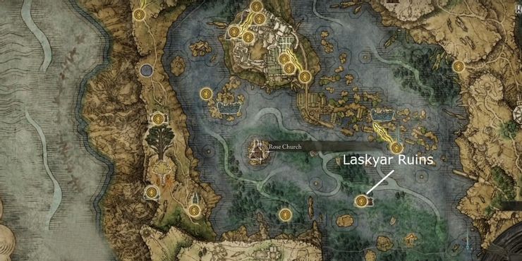Se debe advertir a los jugadores que obtener Somber Stones 6 y 7 requerirá el mayor esfuerzo de todos los demás, pero es completamente posible hacerlo desde el principio sin tener que matar a un solo enemigo en Anillo de Elden. Es importante que los jugadores ignoren a todos los enemigos con los que se encontrarán y recuerden usar todos los Sitios de Gracia que encuentren. Al regresar a Liurnia of the Lakes, los jugadores deberán viajar a la desembocadura del lago principal, que es la parte más cercana a Limgrave. Desde allí, dirígete al noroeste hacia el área boscosa del lago para encontrar las Ruinas de Laskyar, encuentra el mirador de piedra con un teletransportador y úsalo. Esto llevará a los jugadores a la entrada de la Academia de Raya Lucaria.