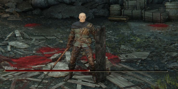Patches es un PNJ recurrente de From Software que ha aparecido en todos los juegos de Soulsborne excepto en Sekiro: Las sombras mueren dos veces. Duplicito e intrigante, a menudo finge amistad para atraer al jugador a una trampa. En Anillo de EldenSin embargo, lleva las cosas un paso más allá y aparece como un jefe en una de las mazmorras de Limgrave.
