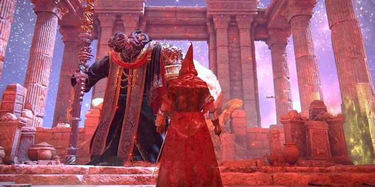 White Mask Varré no solo proporciona consejos básicos para progresar en la primera Anillo de Elden semidiós, Godrick el Injertado, también sirve a una fuerza mucho más oscura en las Tierras Intermedias, una que busca la sangre sacrificial de los nobles. Varré engaña y utiliza al exiliado Empañado de Anillo de Elden para cumplir con una tarea de sacrificio, una que su maestro necesita para marcar el comienzo de una nueva dinastía y usurpar los Dos Dedos. Siguiendo esta línea de búsqueda hasta el final, el protagonista tiene la oportunidad de vengarse de Varré y enfrentarse al autor intelectual detrás de este desconcertante ritual de sangre.