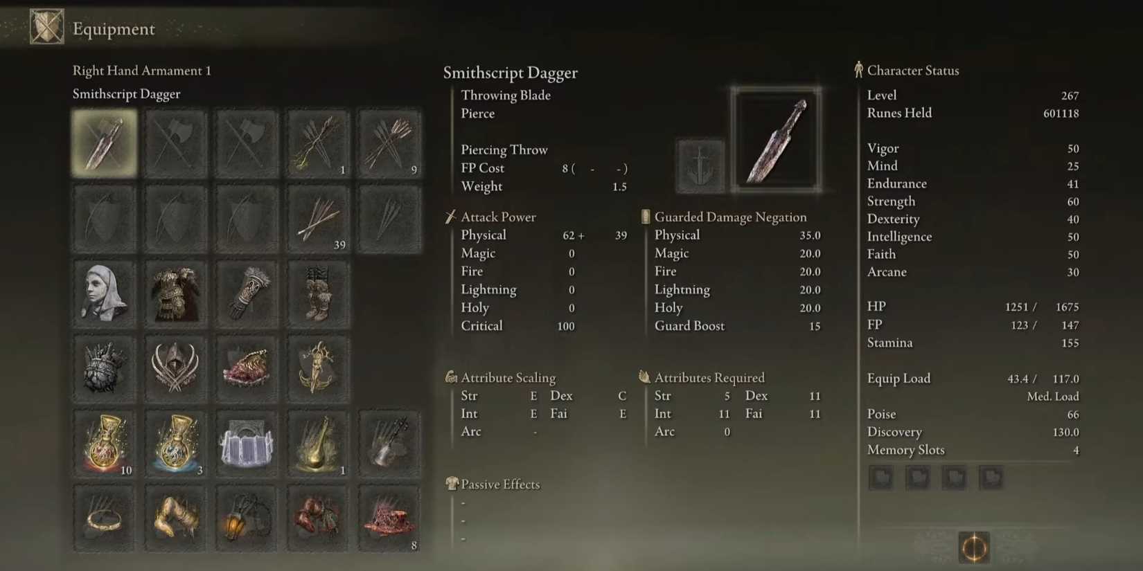 Con eso en mente, debes probar y encontrar la Daga Smithscript en el La sombra del Erdtree DLC en Aro de fuego.