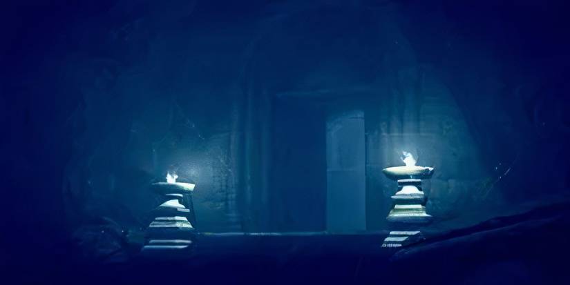 Para progresar, mira por encima del borde del acantilado hacia el este para encontrar varias plataformas de piedra que puedes usar para bajar. Usa el doble salto de Torrent para descender con seguridad a una zona con dos cascadas. Continúa hasta el borde sureste del acantilado, a la izquierda de donde continúa la primera cascada, para encontrar más plataformas de piedra que te llevarán aún más abajo. Al llegar al fondo del acantilado, encontrarás Darklight Catacombs, a las que deberás ingresar para progresar.