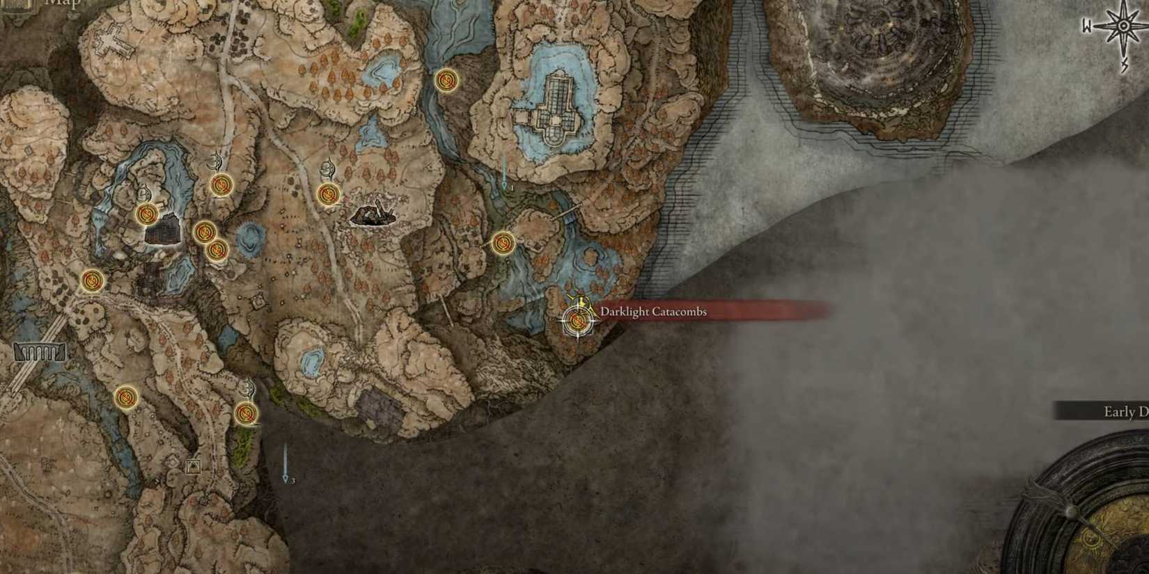 Desde el sitio de gracia de las Catacumbas de Darklight, debes Baja cuatro pisos de mazmorras para llegar a la pared de niebla dorada que precede a la pelea del jefe del Inquisidor Anciano. Cuando comiences a explorar el área, la mazmorra estará oscura y tendrás muy poca visibilidad a menos que lleves una antorcha en una mano. Si giras a la derecha y te ocupas de los enemigos en cada esquina, eventualmente llegarás a una palanca que puedes tirar para iluminar mejor el lugar.