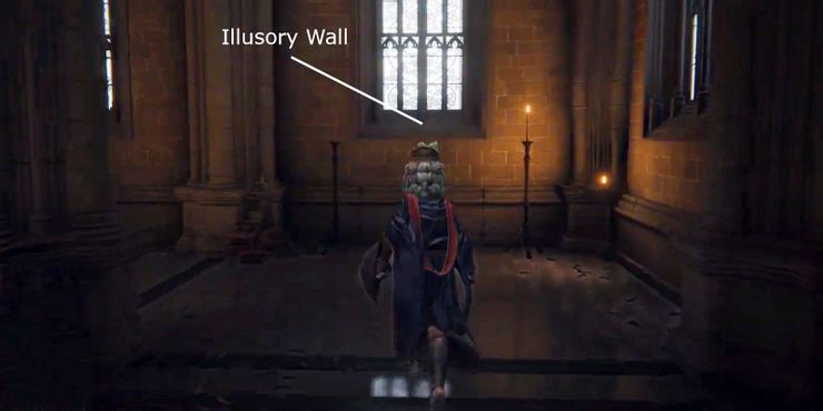 Los segundos jugadores de Illusory Wall probablemente tendrán acceso a la Academia cerca del Schoolhouse Classroom Site of Grace. A medida que los jugadores avanzan en la Academia de Raya Lucaria en Anillo de Elden desde ese Sitio de Gracia, pueden girar a la izquierda en el pasillo para encontrar una habitación con un librero vacío directamente en frente de la entrada. Golpear la librería revelará que es ilusoria y otorgará acceso a un balcón donde los jugadores pueden encontrar una piedra de herrería. [4].