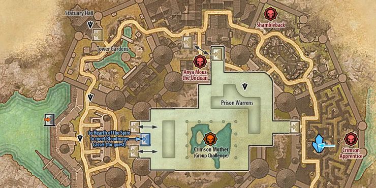 Al ingresar a la ubicación de The Spire of the Crimson Coin, los jugadores deben moverse a la parte más al este del área. Hay un laberinto de setos ligeramente al sureste de Prison Warrens. Los jugadores deben extremar las precauciones en esta zona, ya que hay muchos enemigos en toda la mazmorra pública.