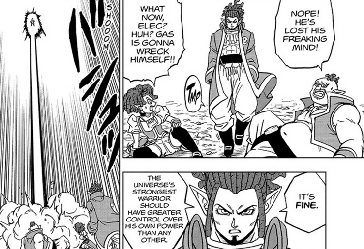 Elec y los Heeters usaron las Esferas del Dragón de Cereal para convertir a Gas en el luchador más fuerte del universo, el mismo deseo que Granolah hizo primero. Matemáticamente, al menos, Gas debería ser más poderoso, pero Granolah ha seguido defendiéndose en la lucha, incluso después de la última transformación de Gas. Mientras Goku y Vegeta están cerca, ambos están agotados y no podrían contribuir mucho más que una distracción. Ya sea que termine en victoria o derrota, Granolah tiene que terminar esta pelea por su cuenta.