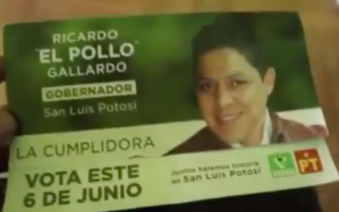A través de redes sociales se difundió el video donde un hombre muestra la tarjeta “La Cumplidora”, la cual dijo, le llegó a su casa como parte de la campaña de Ricardo Gallardo, candidato de la coalición del Partido Verde Ecologista de México (PVEM) y el Partido del Trabajo (PT) a la gubernatura de San Luis Potosí, para ganar la gubernatura de San Luis el 6 de junio.
