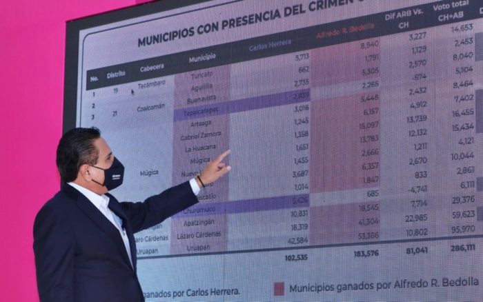 El mandatario michoacano expuso este jueves “más de 90 pruebas que demuestran cómo el crimen organizado obligó a marcar las boletas a favor de Morena en determinados distritos electorales”, apuntó en redes sociales.