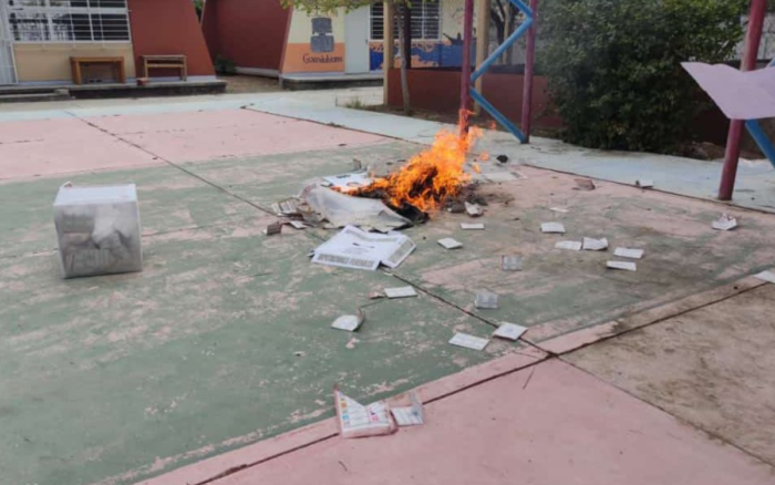 Las casillas quedaron en cenizas y otras boletas tiradas en las calles en señal de que la elección se suspendió.