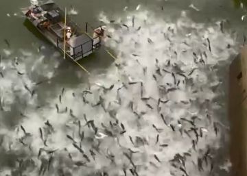 Las carpas asiáticas están devorando literalmente los ríos y lagos de Kentucky (Estados Unidos). El número de ejemplares ya es incalculable (cada hembra puede poner hasta un millón de huevos al año) y está arrinconando a las especies carpas locales. Por eso, los responsables del Departamento de Pesca y Vida Salvaje han tomado una decisión drástica y brutal: electrocutarlas en el agua. El vídeo de los efectos del shocking boat, como ha sido bautizada la barca electrocutadora, es impactante. No obstante, la medida es temporal, ya que se están construyendo una especie de muros sónicos para impedir que masas de estos ciprínidos voraces y de gran tamaño remonten los cauces fluviales e invadan espacios aún reservados a las especies autóctonas.