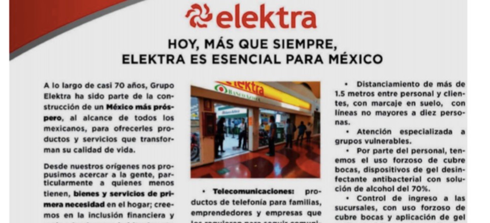 Hoy, más que siempre, Elektra es esencial para México y los millones de mexicanos que necesitan de los productos y servicios que les brindamos. pic.twitter.com/wlkQ2Nyar1