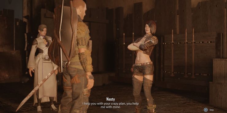 Nasty es un ex forajido que se ha unido a los Morkons. Ella usa principalmente una espada de una mano pero no un escudo. Se la puede encontrar dentro de la base Morkon de la Gruta. Para entrar, dirígete hacia el oeste desde la Granja Abandonada y hacia la entrada inferior de la caverna; si te diriges a Tomsontown en el acantilado de arriba, solo encontrarás Reavers hostiles y otros enemigos. A su llegada, acuerde el recorrido de la Gruta con el guardia Dimitry. Eventualmente llevará a Jax a la arena, pero retrocederá un poco y entrará al Santuario de Sangre supervisado por Zarina. En el interior, Nasty matará a un subordinado desobediente y se ofrecerá a unirse a Jax si los jugadores aceptan ayudarla a ganar audiencia con todas las demás facciones. Sin embargo, Nasty también odia a Caja en Elex 2y los dos pueden perder la aprobación si están juntos con demasiada frecuencia.