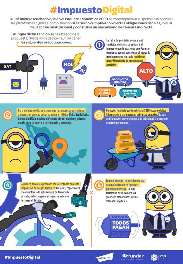 ? COMUNICADO | El @senadomexicano discute hoy el dictamen del #ImpuestoDigital. Aunque se eliminó la sanción de bloqueo a apps y servicios, aún quedan desafíos por resolver. pic.twitter.com/FmXi9dRepo