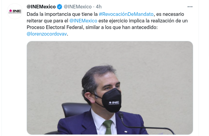“Ya la Suprema Corte de Justicia ha sostenido que el INE tiene el deber de prever en cada proyecto de presupuesto los recursos necesarios para que, en su caso, se puedan realizar los procesos de democracia directa como consultas populares y el procedimiento de Revocación de Mandato”.