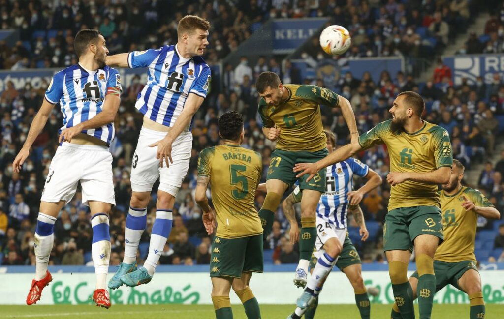 La Real, que comenzó con cinco jugadores en defensa, presionó de manera impecable cuando vio que el Betis tenía intenciones de afincarse en campo contrario. Ajustó Imanol sus líneas, y el equipo donostiarra comenzó a sentirse cómodo en el campo. Pese a que Álex Moreno enseñaba a ratos su magnífico estado de forma por el carril izquierdo, era el equipo de casa el que mantenía la iniciativa, con un Sorloth muy inspirado y con Silva clarividente, aunque sus intentos se frenaran al borde del área.