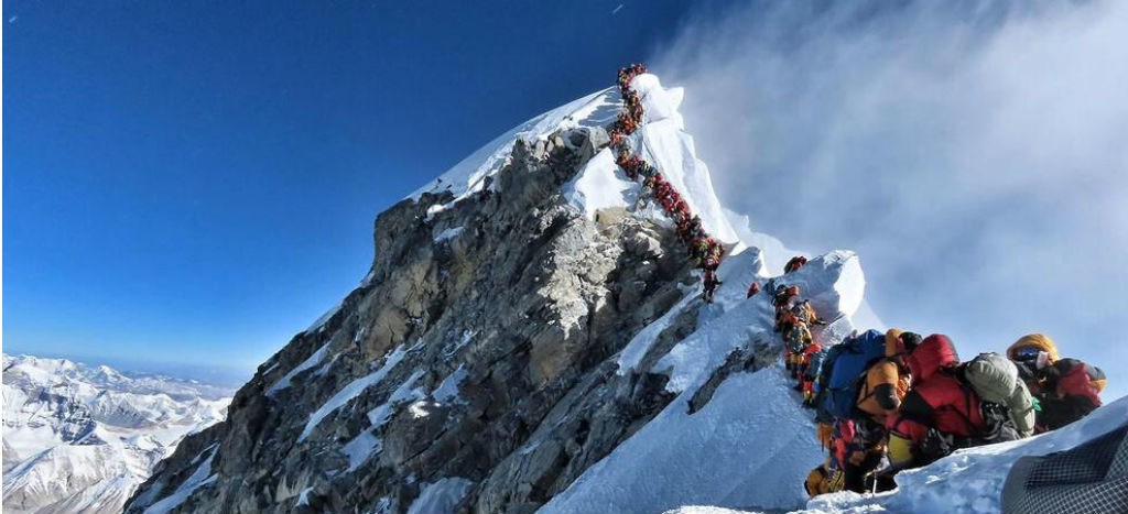 El alto número de montañistas que visitan el Everest esta temporada ha provocado que se forme una larga fila y un hacinamiento para poder subir a la cima, causando fatiga en los escaladores que deben hacer un mayor esfuerzo.