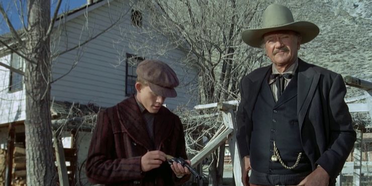En la última película de su carrera, El tirador, John Wayne interpretó al famoso pistolero JB Books. En la película, JB Books se está muriendo de cáncer, lo que lo convierte en el objetivo de todos los pistoleros que quieren hacerse un nombre al ser el que mata a la leyenda. Mientras espera su inevitable muerte, JB Books se convierte en la figura paterna de un niño, interpretado por Ron Howard.