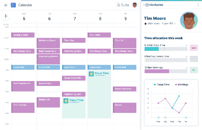 Descarga Clockwise y luego puede configurar los parámetros para los cuales se pueden mover las reuniones y cuáles se establecen en piedra y otras preferencias. Como escribió Martin en una publicación del blog que anunciaba la nueva herramienta, esto les da a los empleados “bloques de tiempo ininterrumpidos para enfocar, pensar e innovar”. Por ahora, está disponible para los usuarios de G Suite.
