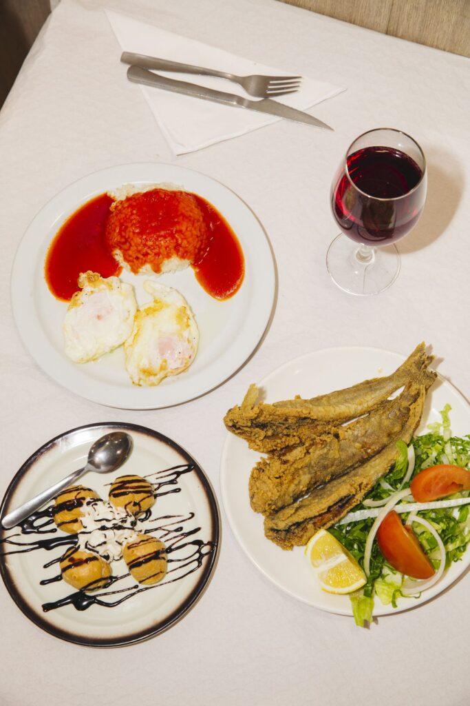 El restaurante familiar Trigo ejerce como tal para los obreros que curran en el polígono industrial de Polvoranca, ubicado en Leganés, un municipio de clase trabajadora de 187.762 habitantes al sur de Madrid. En Trigo, ya sea en el salón o en la terraza, se come con la tele, no con el móvil. Ofrecen cinco primeros, cinco segundos y postre o café a 10,90 euros, todo detallado en una pizarra a la entrada del local. El viernes, que ellos llaman el día del cliente, el precio baja a 9,50 euros. Los platos que conforman el menú se exhiben a diario en una vitrina con una base giratoria, un expositor vertical ante el que se detienen los clientes, aunque se sepan de sobra que el jueves hay arroz como manda la tradición española y que el martes se sirve cocido como manda Isidro Moreno, el propietario del establecimiento.