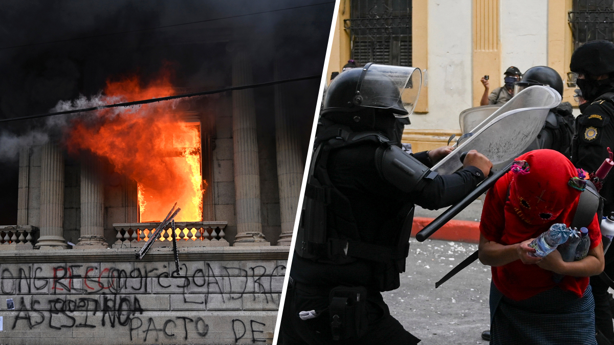 Cientos de manifestantes irrumpieron en los alrededores del Congreso de Guatemala, se enfrentaron con la policía y prendieron fuego en parte de las instalaciones legislativas. Fotografías difundidas en las redes sociales mostraban que personal del Congreso había colocado extinguidores y toneles azules justo donde se quemó el recinto, el cual no tenía resguardo policial antes del incendio.