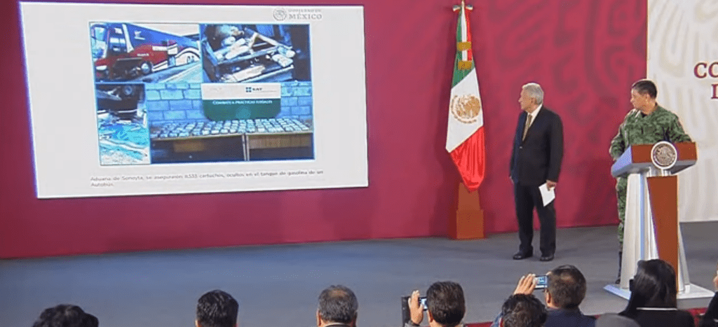 El titular de la Sedena, Luis Cresencio Sandoval, indicó que se han detectado armas en un tanque de gasolina, en refacciones de automóviles, en cajas de unicel y hasta en empaques de alimento y aparatos electrodomésticos.