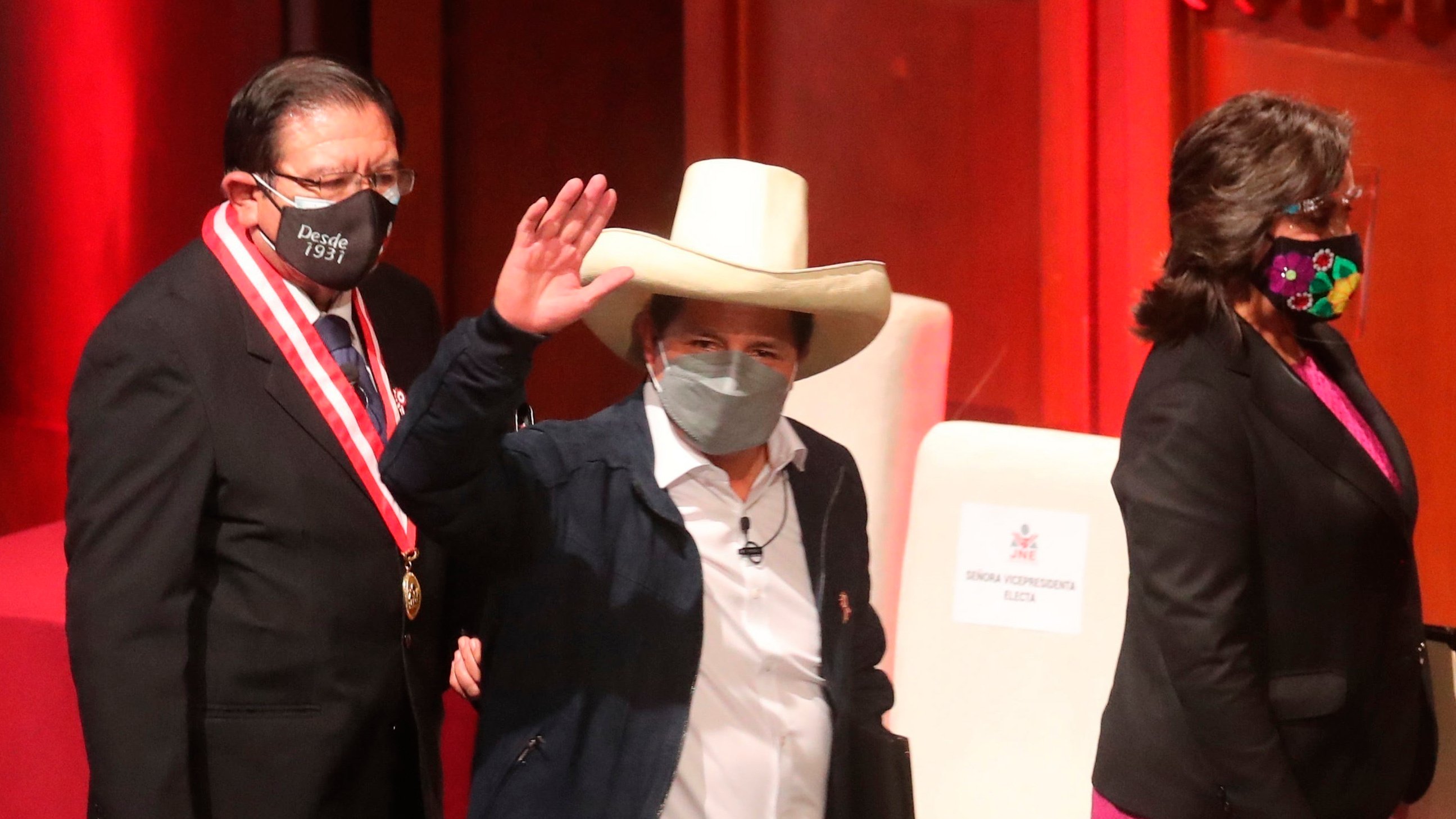El izquierdista Castillo, un maestro rural y sindicalista de 51 años que derrotó en la segunda vuelta presidencial a la derechista Keiko Fujimori, recibió este viernes las credenciales de jefe de Estado para el período 2021-2026, en una ceremonia organizada por el Jurado Nacional de Elecciones (JNE).