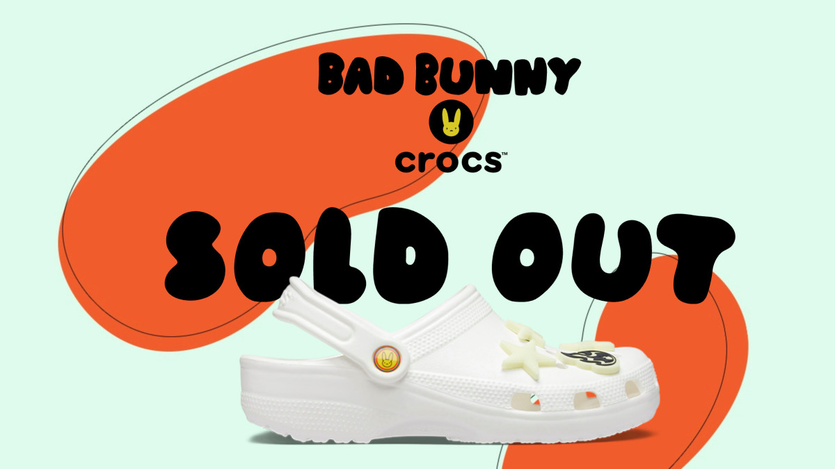 No duraron mucho las existencias del lanzamiento de unos zapatos alegóricos al artista urbano puertorriqueño Bad Bunny. Solo 16 minutos estuvo a la venta el modelo en la página web de la conocida marca de zapatos de plástico Crocs el pasado martes. La nueva versión del zapato “Classic Clog” (Zueco Clásico) estaba adornado con brillantes inspirados por el cantante y brillan en la oscuridad.