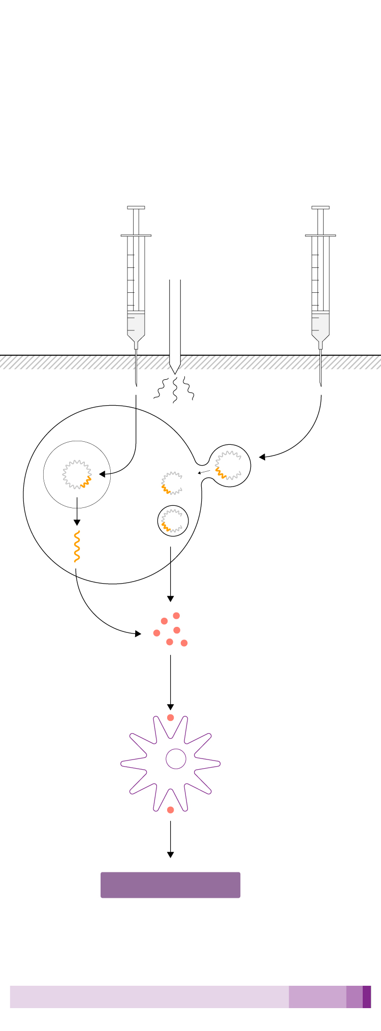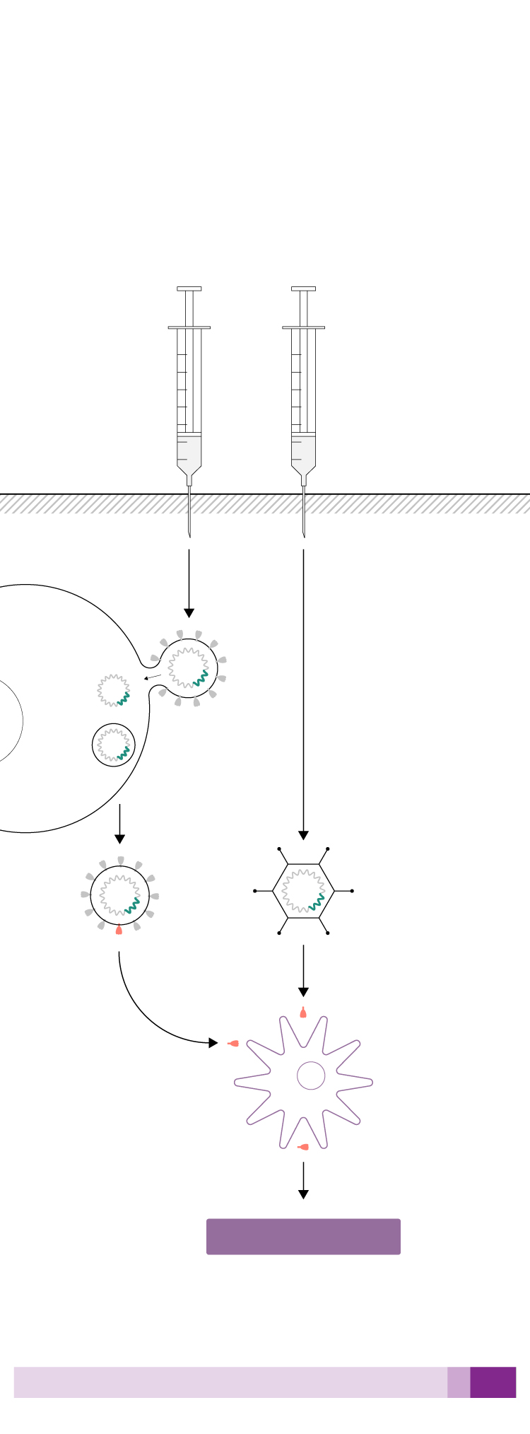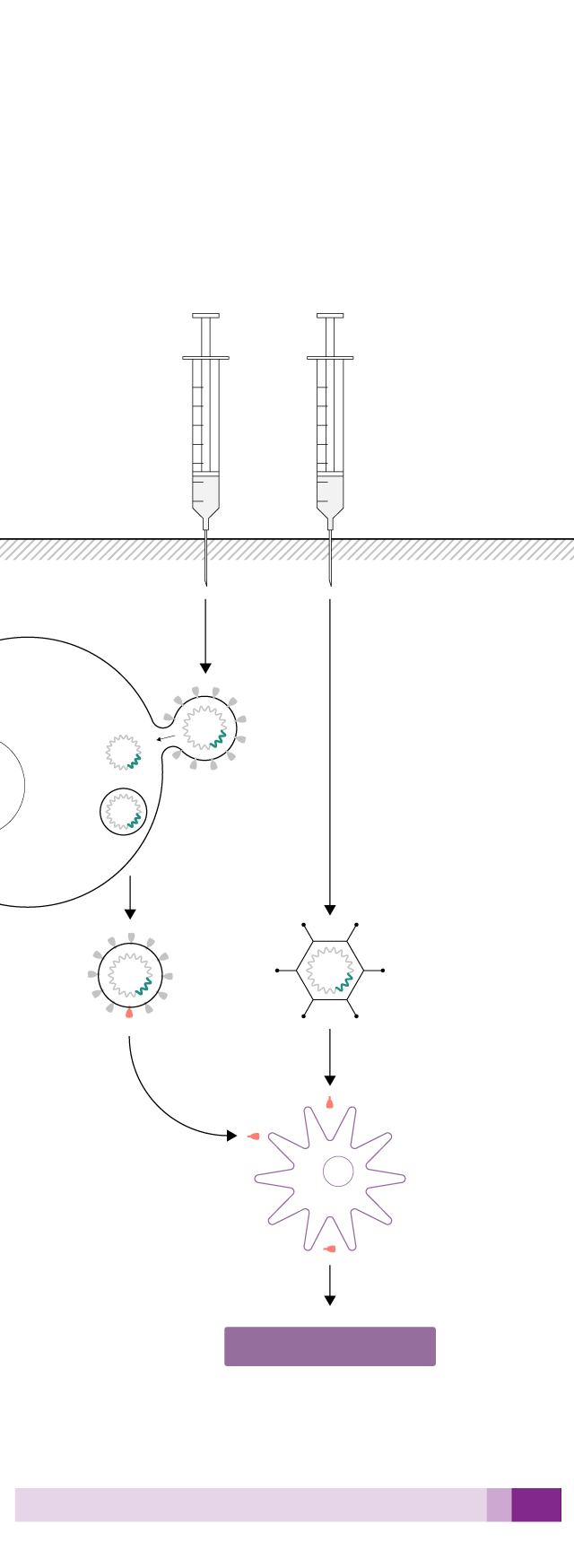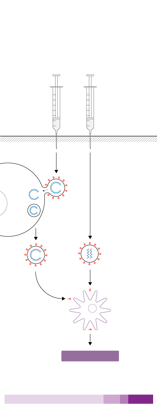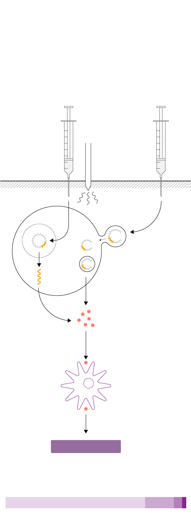 El ARN entra en la célula y hace que esta fabrique proteínas virales