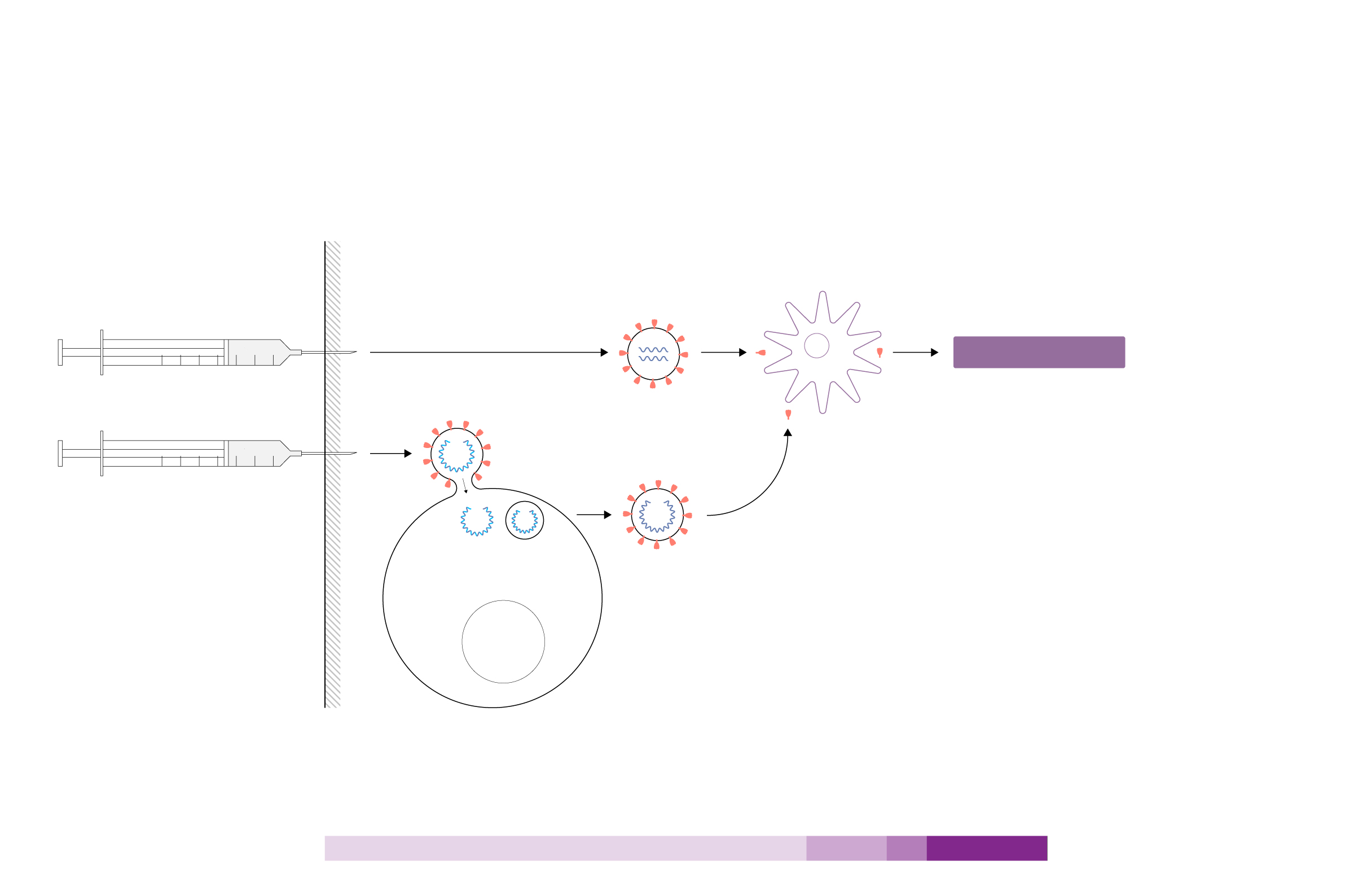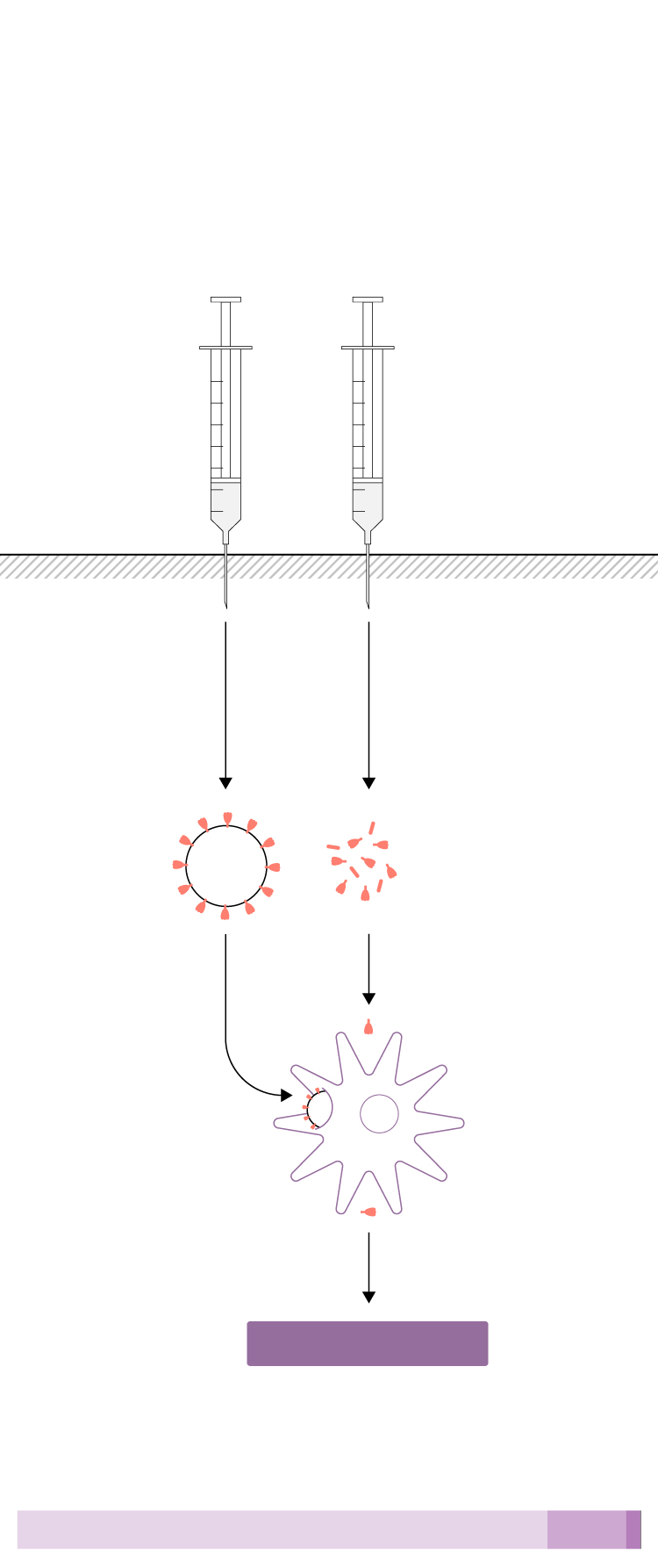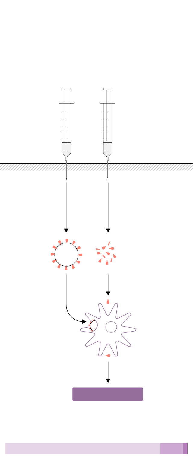 Se introduce en la célula directamente el material genético del coronavirus para generar la proteína de la espícula y que el sistema inmune reaccione.