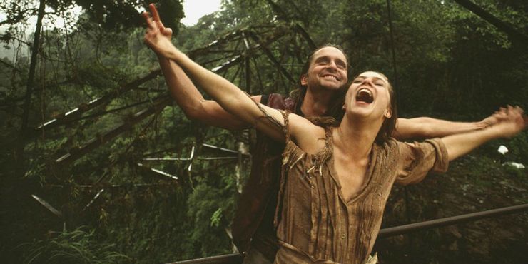 Una escena de baile al aire libre en ambas películas marca un punto de inflexión para los protagonistas y su relación. En Romanzando la piedracuya secuela Joya del Nilo mató a la franquicia, Jack y Joan escapan de la jungla y encuentran un pequeño pueblo donde bailan y comparten su primer beso. En una nueva versión casi perfecta de la escena, Loretta y Alan escapan de la jungla para encontrar un pequeño pueblo. Ellos también bailan y comienzan a conectarse y entenderse, lo que se convierte en un punto de inflexión en su relación. Además, en ambas películas, la escena del baile al aire libre marca un punto de inflexión en las respectivas búsquedas del tesoro de la pareja. Jack y Joan deciden robar el tesoro ellos mismos y Loretta escucha una canción que responde dónde está el tesoro que está buscando.