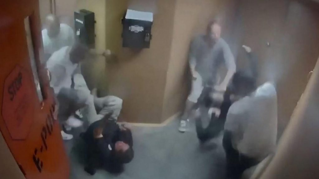 En el video, uno de los oficiales parece estar hablando con uno de los reclusos, que está fuera del marco de la cámara, cuando es atacado. No se sabe lo que se dijeron.