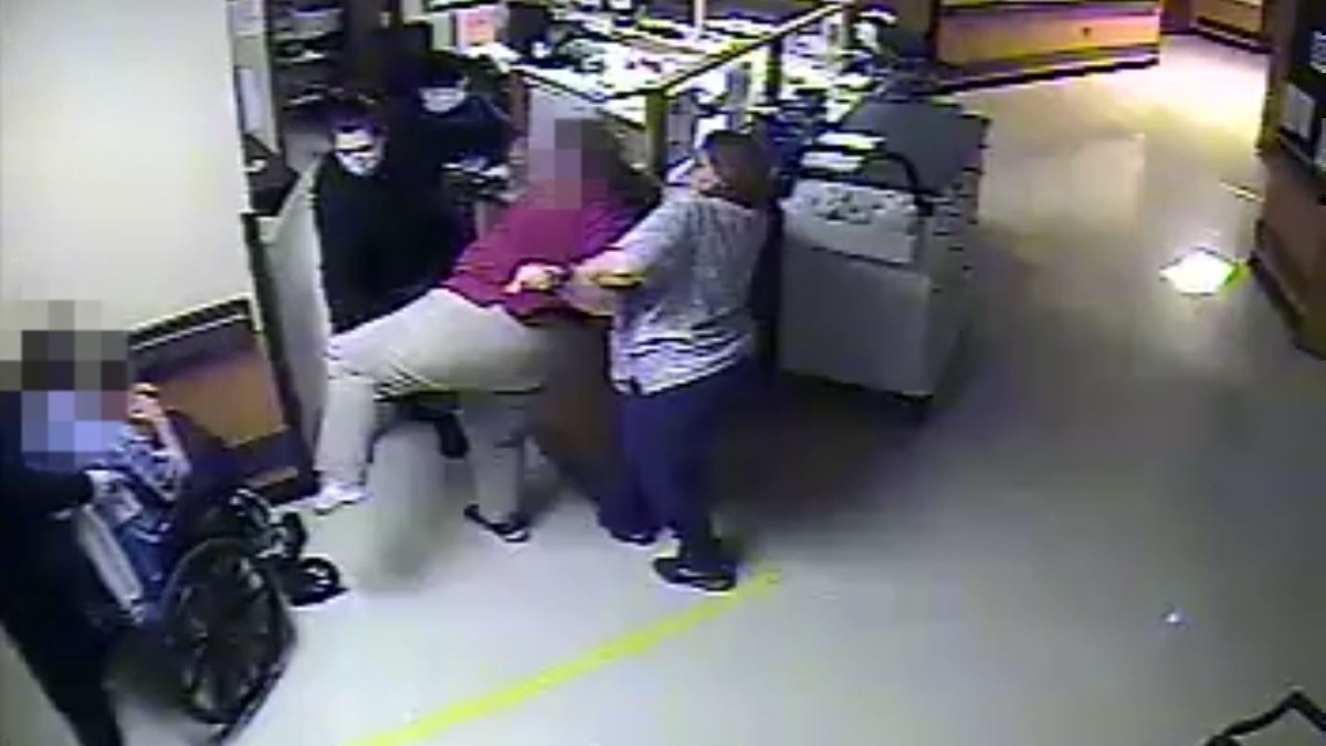 Al día siguiente, un director del centro de cuidado revisó el video y se lo entregó a la policía. En la grabación se ve cómo la mujer fue tirada al suelo y sometida durante largos minutos. Antes de ser tendida al piso alcanza a lanzar una patada contra una persona en silla de ruedas que se encontraba cerca.