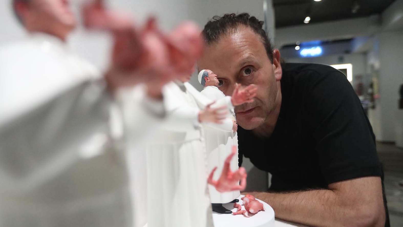 La obra hecha en poliresina de 27 x 11 x 9 centímetros, con base hecha de madera, fue propuesta por el artista al galerista mexicano Israel Alvarado, uno de los pocos miembros del gremio abiertos a presentar obras polémicas y disruptivas como la de Maire.
