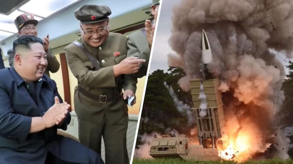 El periódico oficial de Corea del Norte, Rodong Sinmun, publicó fotos que mostraban lo que parecía ser un cohete elevándose desde un lanzamisiles instalado en un vehículo y alcanzando lo que parecía ser un objetivo costero. Kim levanta el puño con júbilo mientras celebra con los oficiales militares.