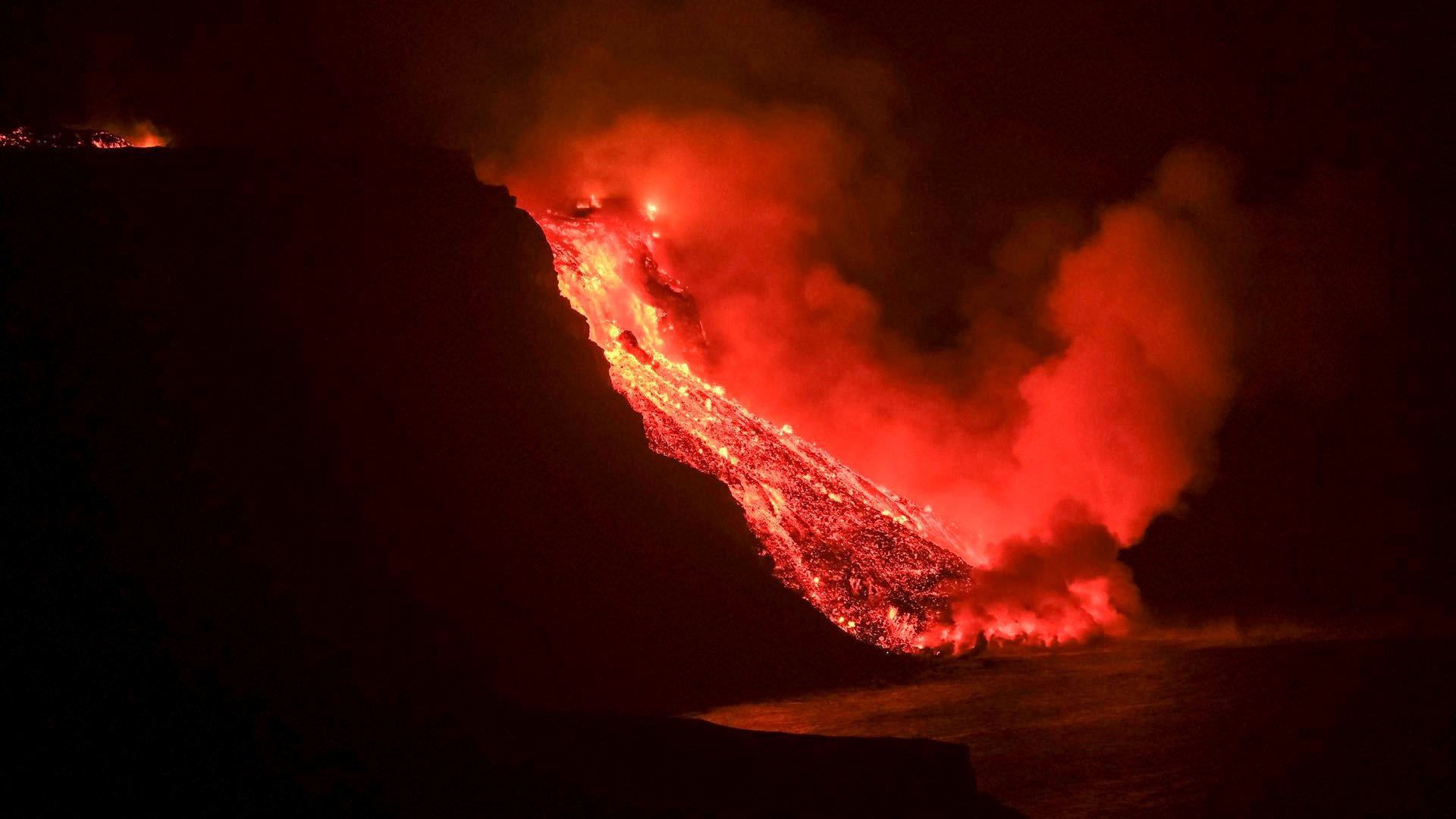 En video: lengua de lava llega al mar tras arrasar con todo en la isla española La Palma