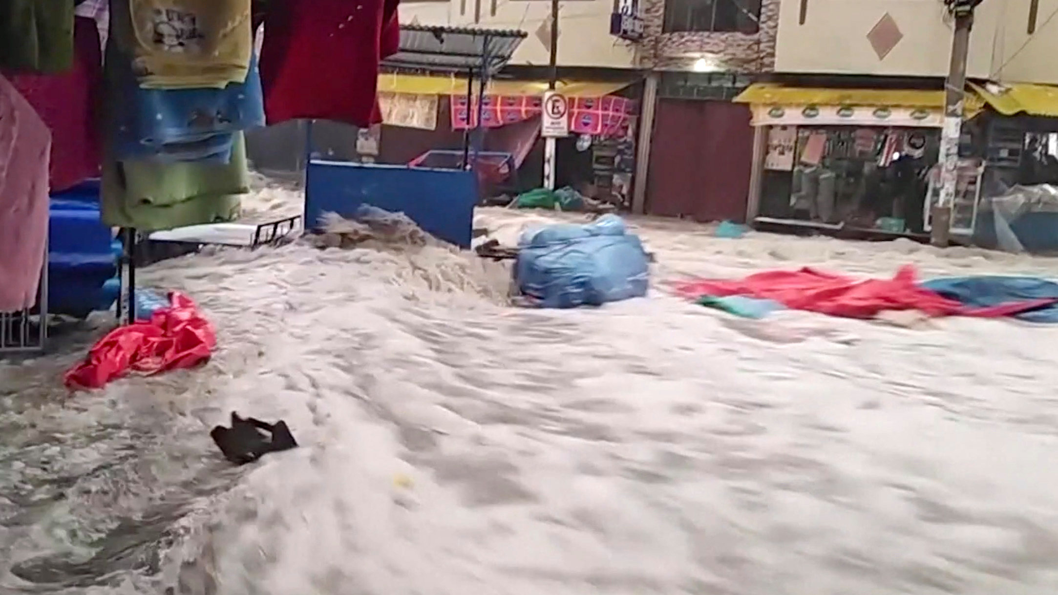 Los agentes todavía hacían recuento de daños este martes en la mañana en el mercado campesino de esa ciudad donde las aguas arrastraron personas, vehículos y puestos callejeros, según imágenes difundidas por televisoras nacionales.