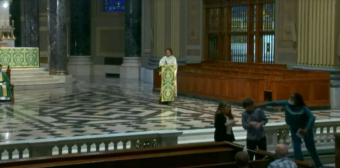 El hecho quedó captado en cámara durante la transmisión en vivo de la misa de las 11:00 a.m.