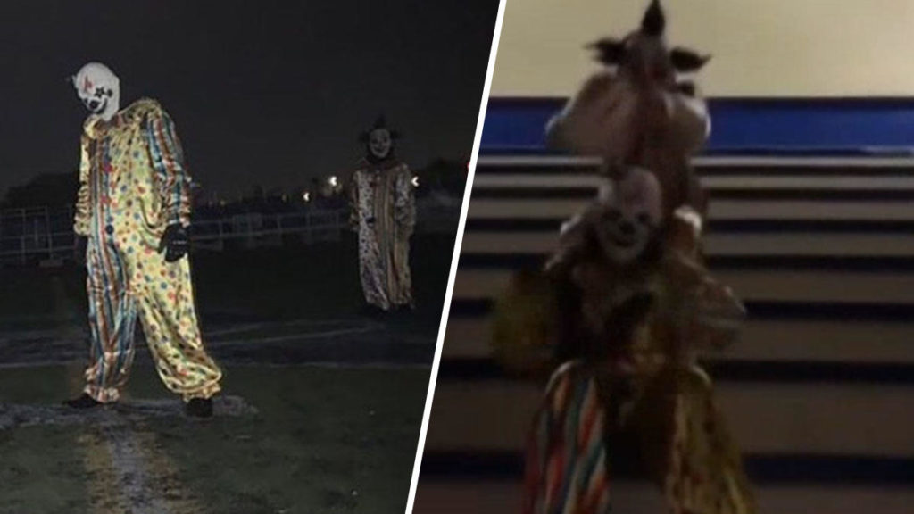 La policía dijo que “los payasos bromistas” también destrozaron la mascota de la preparatoria Montgomery y en la escuela cercana, la preparatoria Hilltop, estrellaron un carrito de golf. De hecho en el perfil del grupo en Instagram aparece un foto de dos payasos, uno sentado y otro encima de algún tipo de carrito de golf.