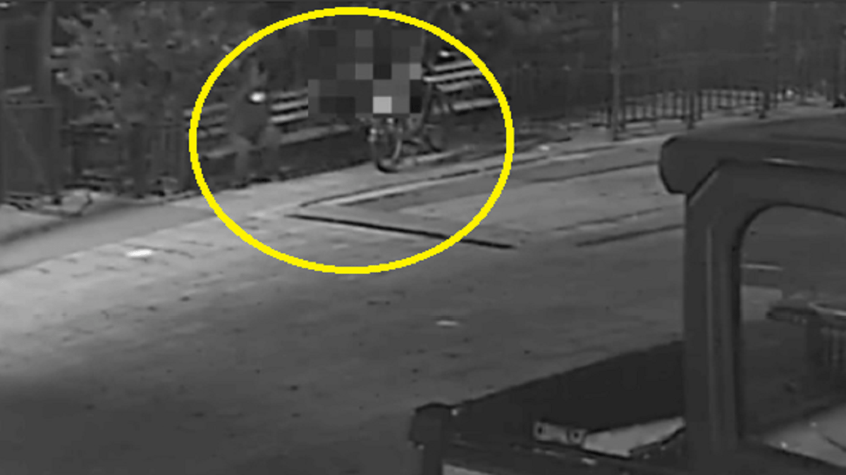 El video, difundido por la Policía el domingo, muestra el intercambio entre los dos hombres. La víctima se encontraba sentado en un banco del parque cuando el presunto atacante se acerca y se sentó a su lado. La policía cortó partes del video del ataque, pero este muestra cuando el sospechoso llega al lugar y luego se aleja con la bicicleta del repartidor.
