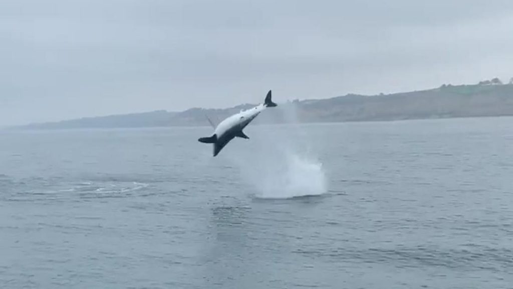 Un grupo de pescadores realizaron una sorprendente grabación el lunes por la mañana en San Diego, California.