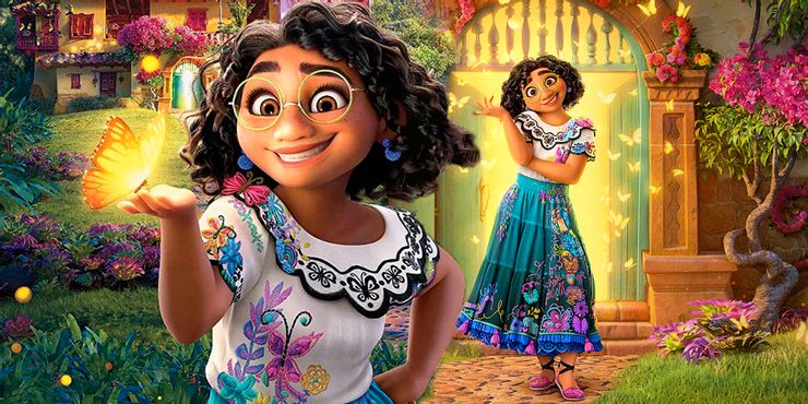 La ropa de Mirabel también tiene más indicios de su liderazgo. Además de los íconos de su familia, Mirabel también borda mariposas en su ropa, lo que representa un cambio para ella y los Madrigal. “Dos Oruguitas” trata sobre dos orugas que luchan con el cambio, se convierten en mariposas y se adentran en un nuevo futuro. Abuela Alma quería mantener a su familia a salvo en un capullo protector después de perder a su esposo, pero Mirabel representa la mariposa que conduce al cambio en Encanto.