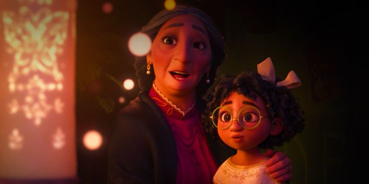 El puesto número uno lo ocupa la escena en la que Mirabel ve el trauma por el que pasó Abuela antes de recibir el milagro de la familia. Si bien se muestra una versión de esta escena al comienzo de la película, esta vez es completamente cruda, mostrando la verdadera agonía que experimentó Abuela cuando su esposo se sacrificó. Este es uno de los problemas reales discutidos en Encantoel trauma causado por la pérdida del hogar y la seguridad.