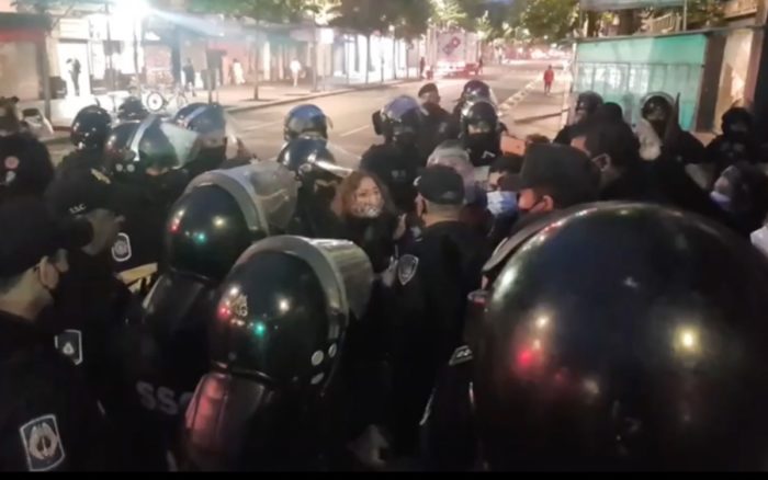 A su vez, la líder del sindicato de Notimex, Adriana Urrea, reporta que elementos de la policía encapsularon a sus compañeros “afuera de #PalacioNacional. Por ejercer nuestro derecho a libre manifestación nos mandan a la fuerza pública”.