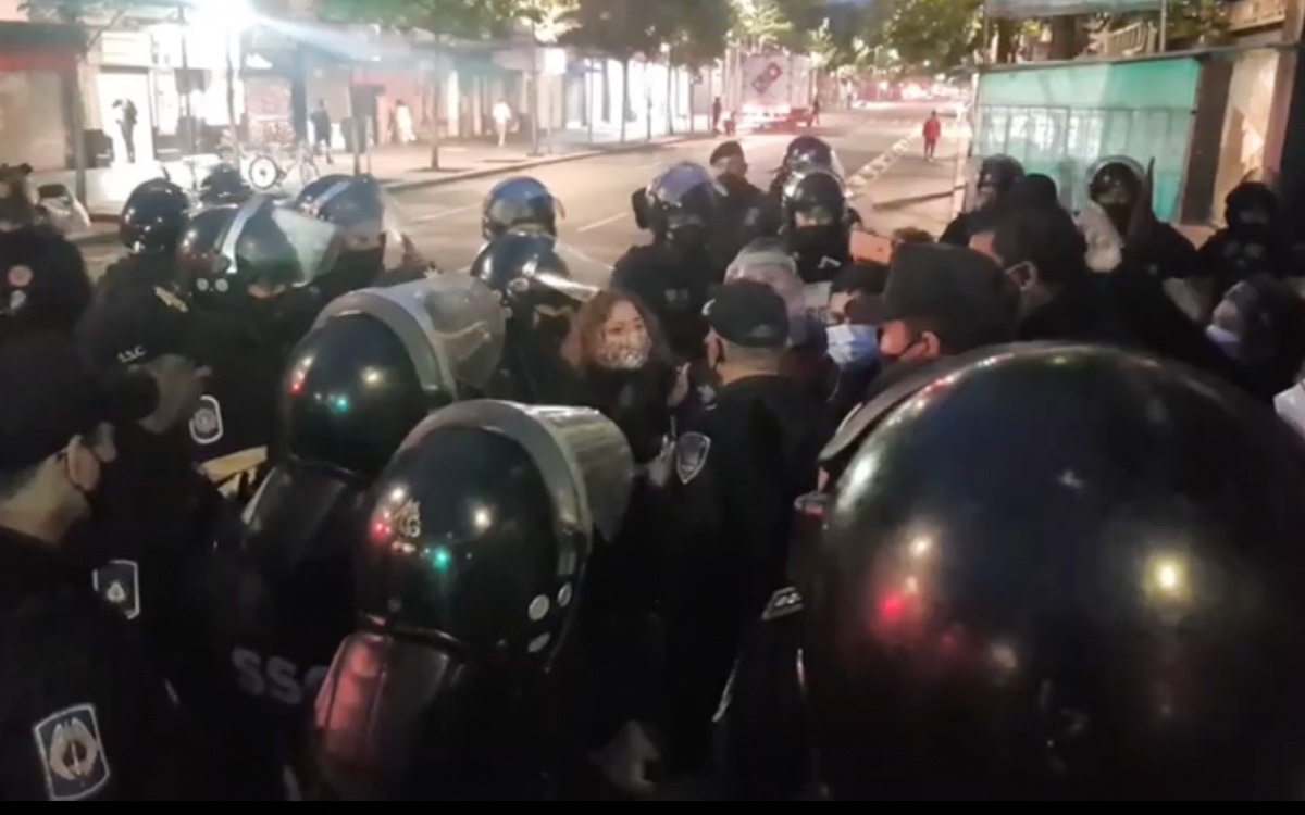 “Como pueden ver los elementos de seguridad nos están quitando nuestra libre manifestación… acabamos de ser reprimidos en nuestra libre manifestación”, narra una mujer en un video que se transmitió en vivo en Facebook.