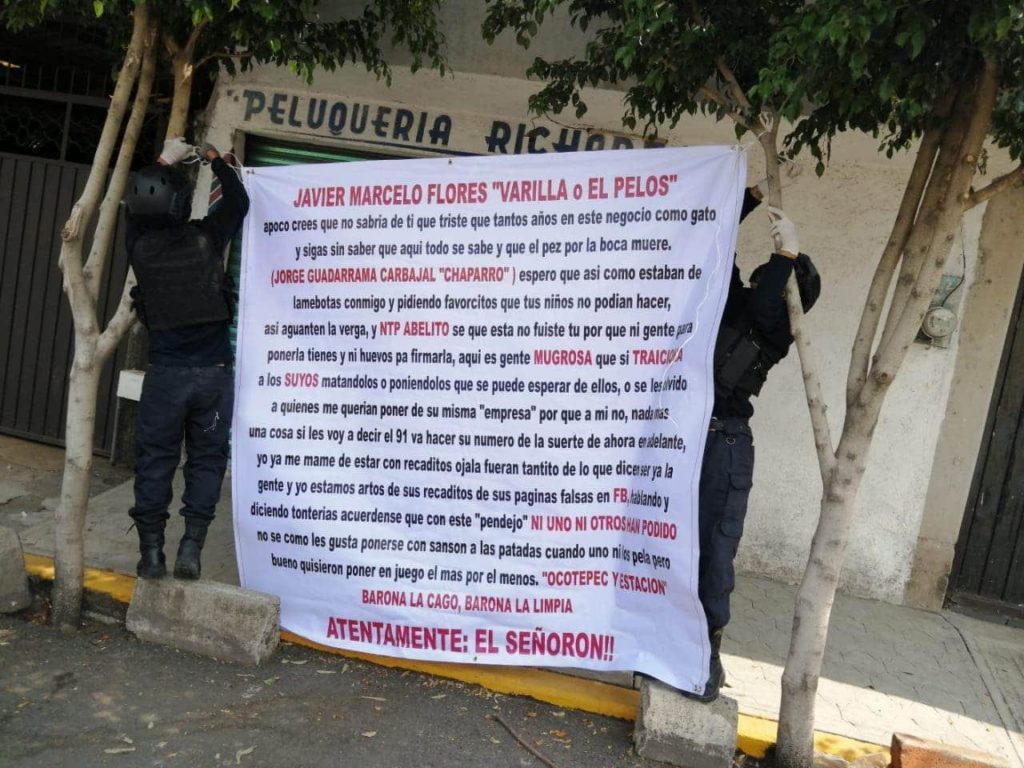 “Nada mas una cosa sí les voy a decir, el 91 va hacer su numero de la suerte de ahora en adelante, yo ya me mame de estar con recaditos, ojalá fueran tantito de lo que dicen ser ya la gente y yo estamos hartos de sus recaditos de sus paginas falsas en FB, hablando y diciendo tonterías. Acuérdense que con este ‘pendejo’ NI UNO NI OTROS HAN PODIDO, no sé cómo les gusta ponerse con Sansón a las patadas cuando uno ni los pela, pero bueno quisieron poner en juego el más por el menos. ‘OCOTEPEC Y ESTACION’ BARONA LA CAGO, BARONA LA LIMPIA. ATENTAMENTE: EL SEÑORON!!”, se lee en las cuatro narcomantas.