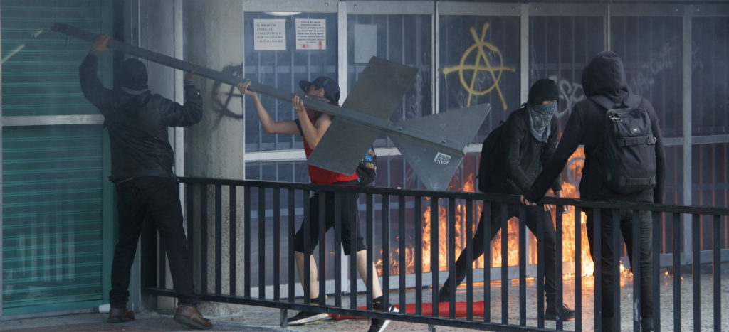 La tarde de este jueves, un grupo de personas encapuchadas prendieron fuego a una bandera de México y a una zona del edificio de Rectoría de la Universidad Nacional Autónoma de México (UNAM), en donde además rompieron cristales, destruyeron una caseta de vigilancia y saquearon una librería.