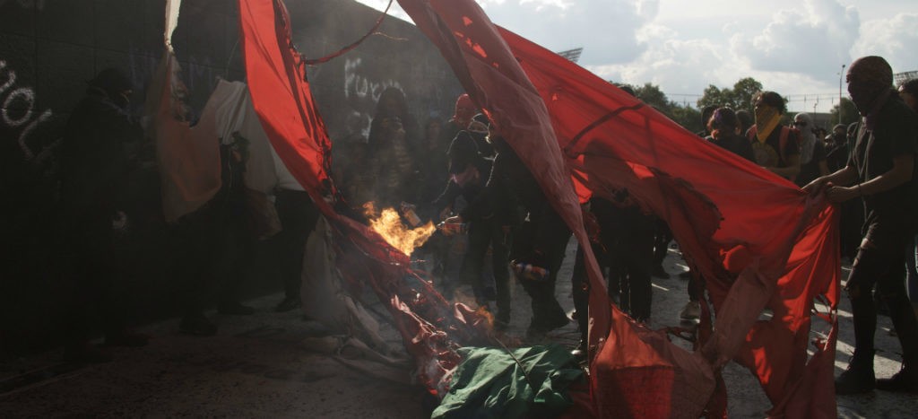 La tarde de este jueves, un grupo de personas encapuchadas prendieron fuego a una bandera de México y a una zona del edificio de Rectoría de la Universidad Nacional Autónoma de México (UNAM), en donde además rompieron cristales, destruyeron una caseta de vigilancia y saquearon una librería.