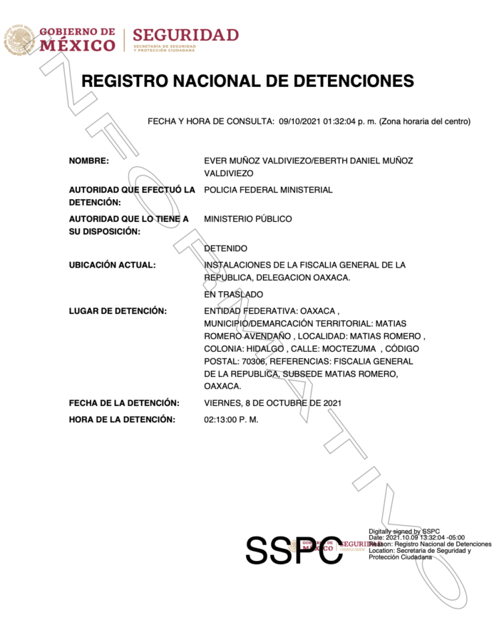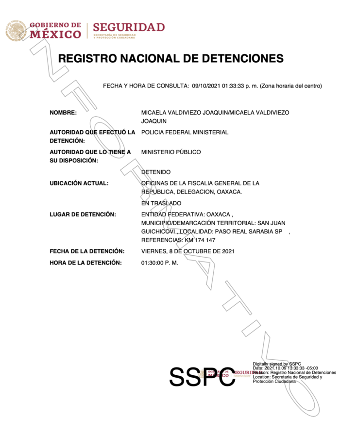 Juchitán, Oax.- Por defender su predio y oponerse a que en sus tierras construyan obras del Corredor Interoceánico del Istmo de Tehuantepec, la profesora ayuujk (mixe) Micaela Valdivieso Joaquín y su hijo Eberth Muñoz Valdivieso, originarios de la comunidad de Estación Sarabia, San Juan Guichicovi, Oaxaca, llevan más de 30 horas detenidos en las oficinas de la delegación de la Fiscalía General de la República, denunció su abogado, Carlos Leonardo Espinoza.