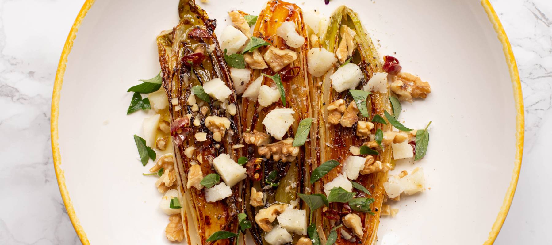 La endivia, o endibia, es una planta herbácea que pertenece a la familia de las Asteraceae, donde también encontramos otras como la lechuga, la escarola o la achicoria. Su sabor es amargo -más intenso en el tronco que en las hojas- y muy característico. Las endivias se pueden comer crudas en ensalada, braseadas, cortadas y salteadas, en una crema o en recetas tan clásicas como las hojas de envidia con roquefort o las tradicionales chicons au gratin belgas.