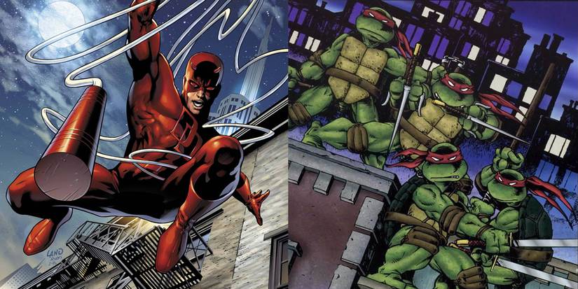 compartir mucho más en común de lo que parece, con sus habilidades ninja, talentos acrobáticos y aventuras con sede en la ciudad de Nueva York, solo algunas de sus similitudes compartidas. Con todos los crossovers ocurriendo en los cómics últimamente, ¿Por qué Daredevil y las tortugas de Ninja Mutant Teenage todavía no se conocieron oficialmente? La respuesta no es tan complicada como los fanáticos podrían pensar.